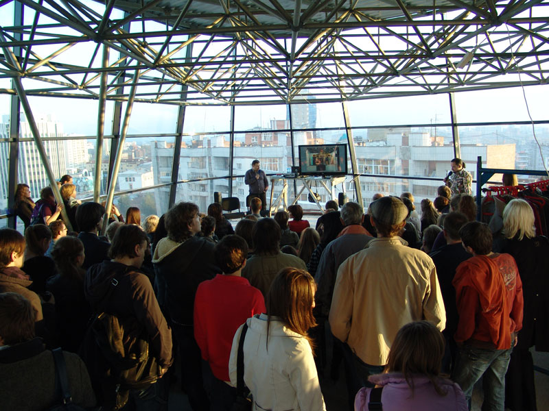 25 сентября в день закрытия экспозиции "Новая архиртектура Сибири" на фоне фотоархитектуры и роскошных видов из прозрачных стен пентхауса прошел мастер-клас известных российских дизайнеров Влада Савинкина и Владимира Кузьмина (Проектная группа "Поле-Дизайн",Москва, www.poledesign.ru), которые в течение почти двух часов неослабно держали внимание многочисленной публики.
