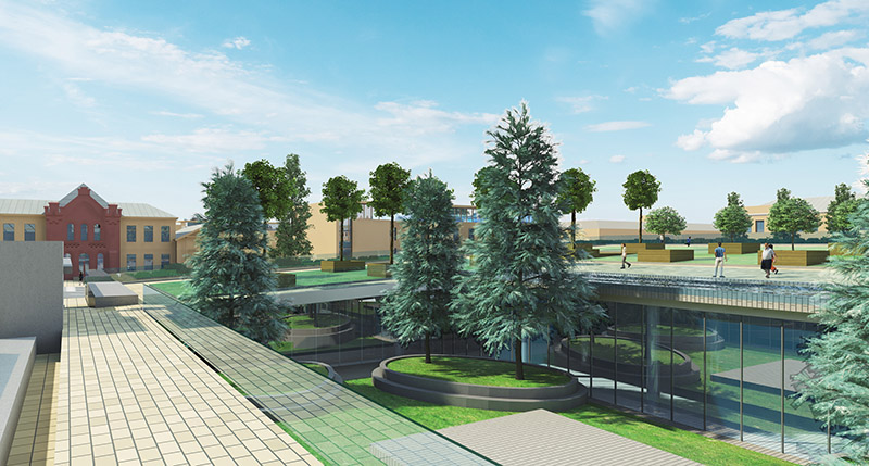 Концепция разработана на основании материалов инвестиционного проекта СК «Светлый берег» по развитию ТПУ, с учётом интересов и технологических требований федеральных ведомств (ФГУП «Почта России», «Росимущество»), государственной акционерной компании «Российские железные дороги», заинтересованных подразделений региональных и муниципальных органов исполнительной власти (Облавтотранс, гор. департамент транспорта, гор. департамент имущественных отношений, департамент строительства, департамент градостроительства и архитектуры), на основе он-лайн опроса (сообщество «Омск – город для людей») и интервью экспертов, выбранных авторами концепции. Целью данной работы является выработка принципиальных архитектурно-планировочных, логистических, инфраструктурных и функционально-технологических решений для строительства и благоустройства транспортно-пересадочного узла на привокзальной площади. Проект предполагается реализовать в две очереди: к дате 300-летия основания города Омска должны быть выполнены работы по обустройству центральной части площади. Полноценное функционирование ТПУ с учётом реализации всего градостроительного комплекса планируется в 2018 году. Площадь участка - 3.2 га Площадь застройки – 20880 м кв. Парковочных мест: 575, в том числе в подземном паркинге – 465. Общая площадь – 52605 м кв., в том числе I очередь: подземный паркинг –13025 м кв подземный общественный центр – 11190 м кв. II очередь: подземный паркинг –5470 м кв общественный комплекс по ул.Рождественского – 8950 м кв. автостанция – 590 м кв. торгово-развлекательный центр (северная надземная часть) – 10380 м кв. бизнес-центр – 1500 м кв. гостиница – 1500 м кв. Площадь центрального сквера – 6443 м кв, в т.ч. сохраняемой части – 627 м кв (до реконструкции площадь сквера 3500 м кв., с учетом озеленения участка прокуратуры - 5480 м кв.)